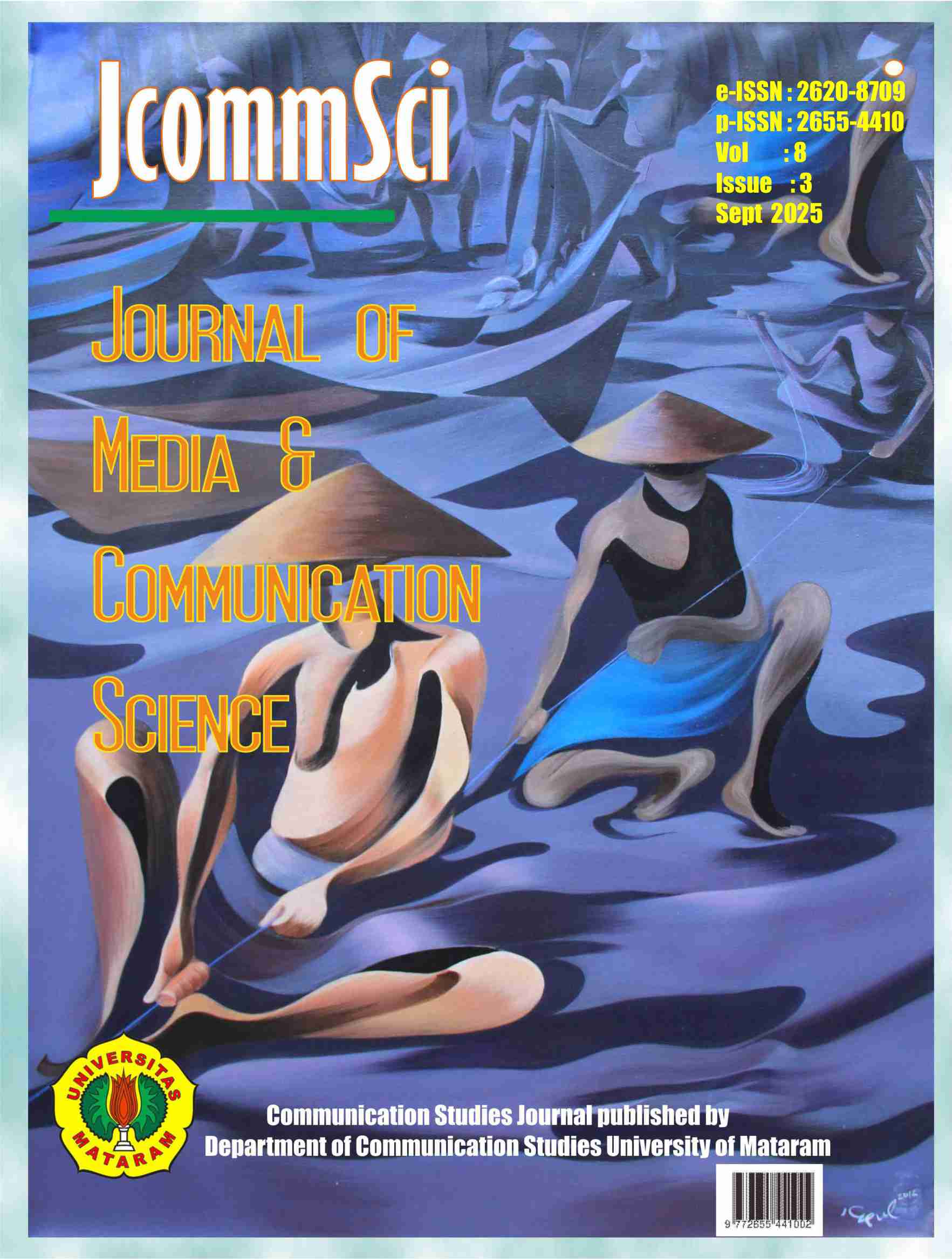 Vol. 8 No. 3 (2025)We received so many interesting articles as the interest of academics writing continues to grow. However in this issue, Jcommsci explores communication as a powerful catalyst for change across diverse Indonesian contexts. We journey from digital realms, where Instagram followers shape student confidence and the @Bara-baraya.bersatu account fuels a social movement, to tangible communities. In Bilebante, empowerment communication underpins sustainable tourism, while Saringembat Village sees integrated media combating stunting. Finally, the local media’s critical role in defending the Meratus Mountains highlights the power of public discourse. Collectively, these studies reveal how modern communication strategies—from social media to grassroots campaigns—are pivotal in mobilising action, building agency, and navigating complex socio-environmental challenges. -